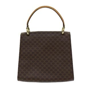 CELINE Macadam Canvas Hand Bag Pvc Leather Brown Gold