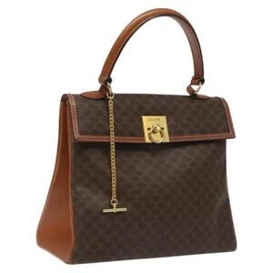 CELINE Macadam Canvas Hand Bag Pvc Leather Brown Gold