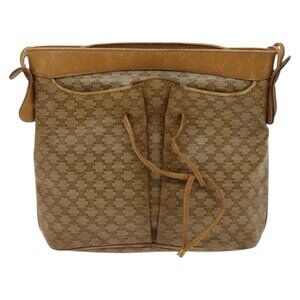 CELINE Macadam Canvas Shoulder Bag Beige Gold Auth