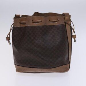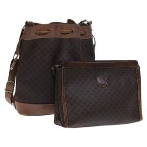 CELINE Macadam Canvas Shoulder Bag PVC Leather 2Set Brown Auth bs23540