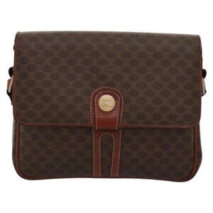 CELINE Macadam Canvas Shoulder Bag PVC Leather Brown Gold