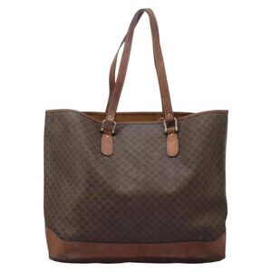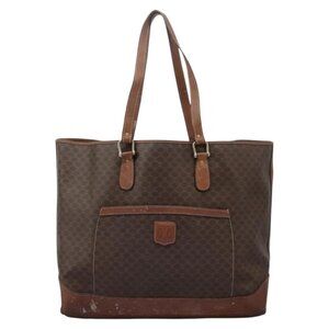 CELINE Macadam Canvas Tote Bag Brown Gold Auth 124118