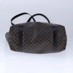 CELINE Macadam Canvas Tote Bag PVC Leather Black Gold Auth 106873V