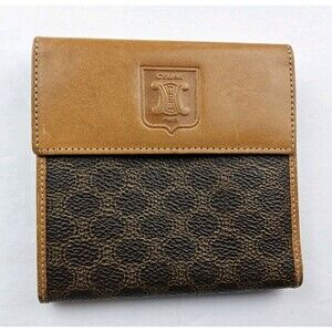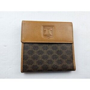 CELINE Macadam PVC Leather Trim Bifold Snap Wallet Brown