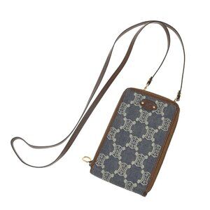 CELINE Macadam Pattern Shoulder Wallet Multi Case Denim Leather Blue 36KB164