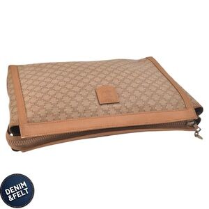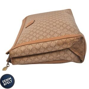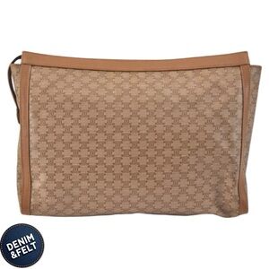 CELINE Macadam Tan/Brown Leather Blason Pattern Clutch/Hand Bag/Cosmetic Bag🤎