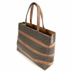Elevate your style with this vintage Céline shoulder bag, meticulously crafted from sumptuous brown leather and elegantly adorned with the iconic Macadam pattern and horizontal stripes. Shoulder Strap Drop: 12.5" Height: 11.75" Width: 18.25" Depth: 4.5"