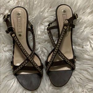 CELINE OPEN TOE STRAPPY LEATHER SANDALS SIZE 37