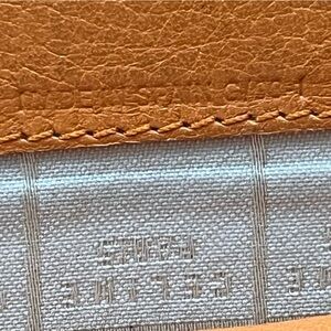 Stylish orange leather wallet with a sleek design. Perfect for organizing your essentials. Preowned with normal usage. Please reflect on photos. Lighting fading has begun, nothing severe
