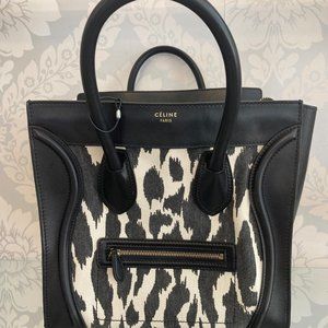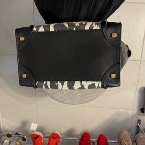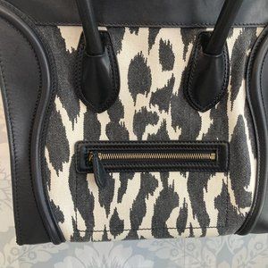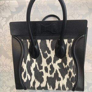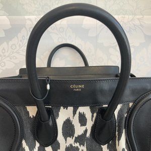 CELINE PARIS Black Leather Animal Print Handbag/Satchel