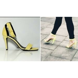Celine "Iconic" high-heeled ankle strap sandal with an open toe CRAFTED IN A DIVINE "RARE YELLOW" HUE.