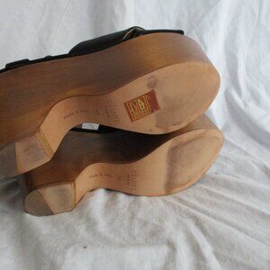 CELINE PARIS ITALY Strappy WEDGE PLATFORM PUMP Shoe 36 Sheer Italy BLACK