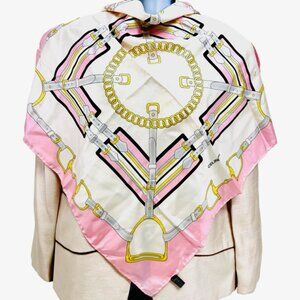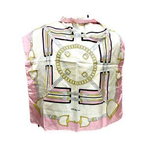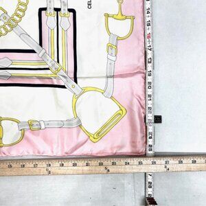 CELINE PARIS Silk Satin Scarf 27" Light pink white black yellow chain (34