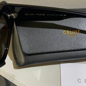 Timeless and chic Celine sunglasses in glossy black frames with dark tinted lenses.