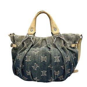 CELINE Paris Macadam 2WAY Handbag Shoulder Bag Denim Leather Silver