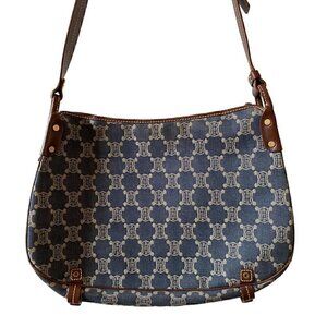 CELINE Paris Macadam Denim Signature Denim Flap Messenger Bag Y2K Shoulder
