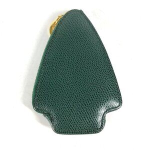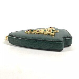 CELINE Rhinestone tree Coin Purse Coin Compartment Wallet Pouch Leather Green