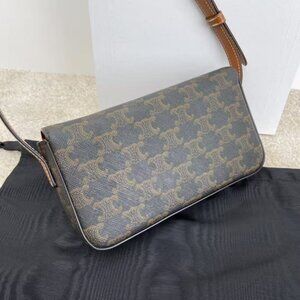 CELINE SHOULDER BAG CLAUDE IN TRIOMPHE CANVAS AND CALFSKIN