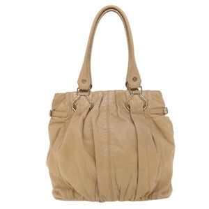 CELINE Shoulder Bag Leather Beige Auth