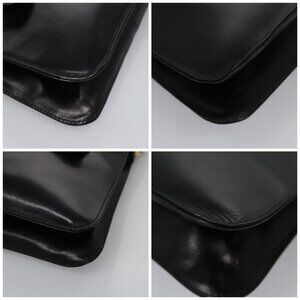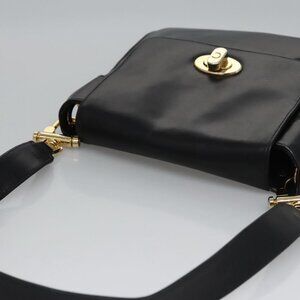 CELINE Shoulder Bag Leather Black Gold Auth EC517