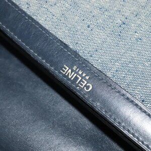 CELINE Shoulder Bag Leather Canvas Navy Gold Auth BD2149
