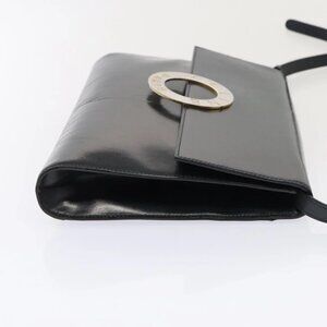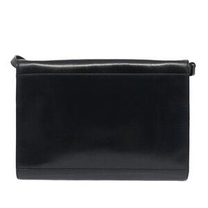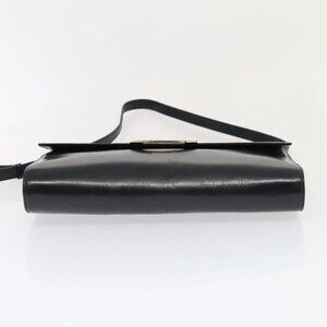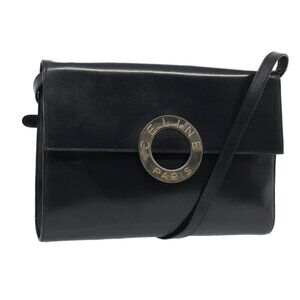 CELINE Shoulder Bag Leather Navy Gold Auth 91291
