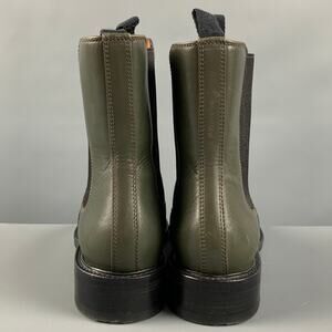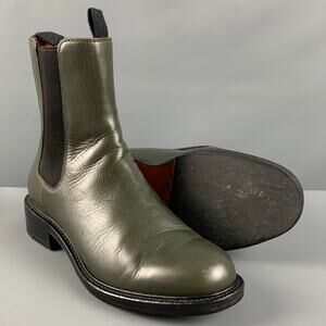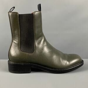 CELINE ankle boots comes in a green leather material featuring an elastic panel, black sole. Comes with dust bag. Made in Italy.