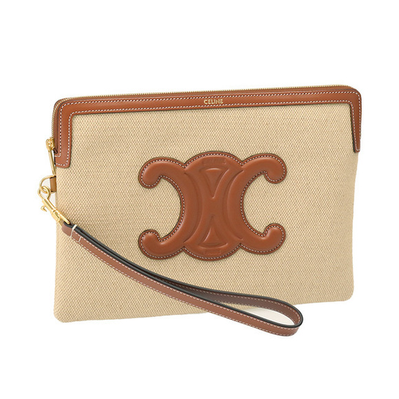 CELINE Small Pouch with Strap Triomphe Clutch Brown