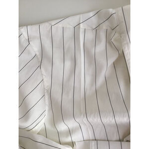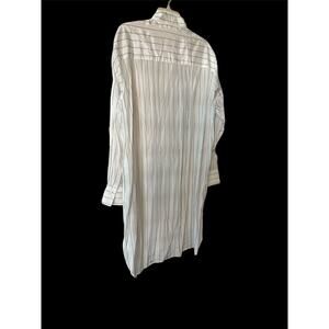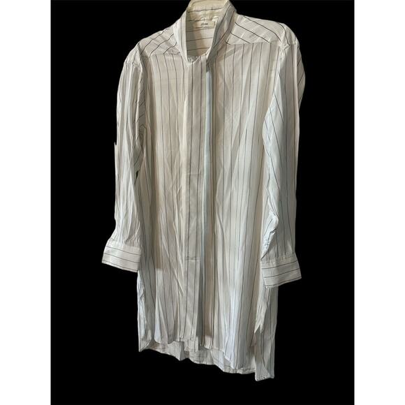 Loose fit.-white and black stripes. recent collection. 80% silk, 20% polyamide. Long lavalier knot to tie according to the desired effect. Fully buttoned front, hidden buttons. buttoned cuffs. Two hidden pockets. Two slits sides. Slightly longer at the back.