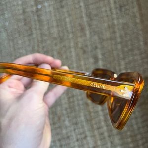 Celine sunglasses CL400911 53E. Lenses size is 57/21/145 in brown color and tortoise brown frame. Made in Italy. Stunning kind of 70's vibe with very orange/yellow fiery lenses. So fun for the mob wife vibe, fur coat and a cigarette has me hollering! No case or bag is why the price is gorgeous but they're really in great shape, the glasses. Worn maybe 5 or 6 times.