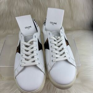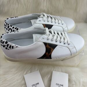 CELINE TRIOMPHE LEOPARD PRINT WHITE SNEAKERS SIZE 40 US 9.5 WOMANS