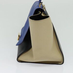 CELINE Trapeze Hand Bag Leather Blue Gold Auth BA990