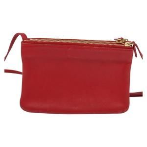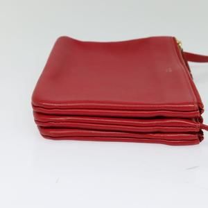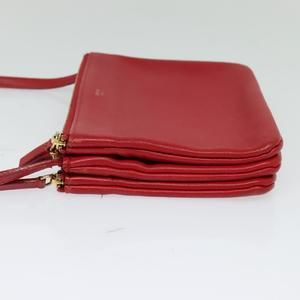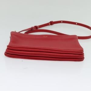 CELINE Trio Shoulder Bag Leather Red Gold Auth hk2829