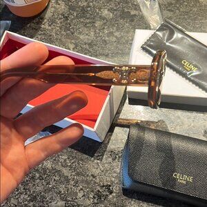 CELINE Triomphe 01 Sunglasses feature an elegant and luxurious design. The round lenses are designed to suit women's styles, while the frames are sturdy and tinted Gradient pink . The frames also boast a sophisticated pink color. The standout feature on both sides of the frames is the Celine logo, enhancing brand recognition