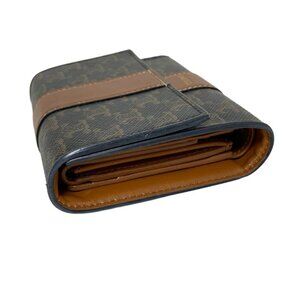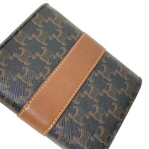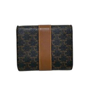 CELINE Triomphe Canvas - Dark Brown Brown PVC Leather Trifold Wallet 386-081825