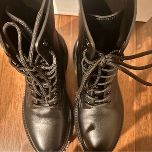 CELINE Triomphe Lace Up Boots, 100% leather, embossed logo at side, studded Celine at toe. Size 37. Excellent condition. Original box and dust bag included.