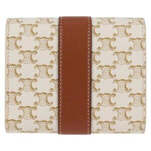 CELINE Triomphe Mini Wallet PVC Beige Auth