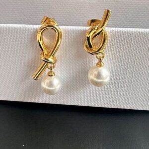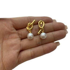 Never worn. Perfect for special occasions or everyday wear, these pearl drop earrings enhance your natural beauty with their subtle shimmer and elegant simplicity, capturing the essence of modern femininity. NO box.