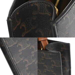 CELINE Vertical Cabas Hand Tote Bag Triomphe Canvas Leather Brown Black 680RH006