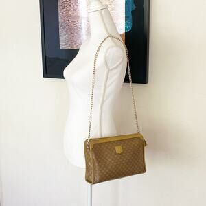 CELINE Macadam Vintage Clutch Bag Purse PVC Leather Camel Authentic