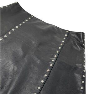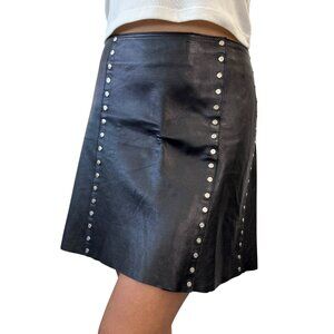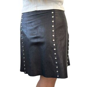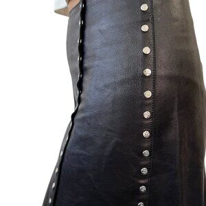 CELINE Vintage Macadam Logo Button Mini Skirt #38 Black Silver Leather [105060]