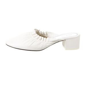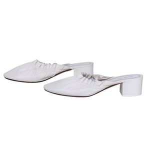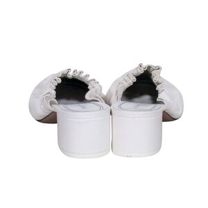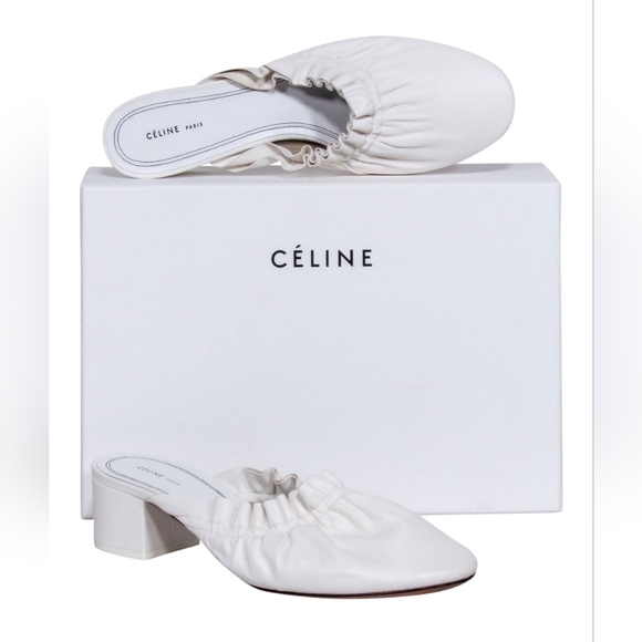 CELINE white leather mule with a soft ruffle trim. Slip-on design for easy wear and a low block heel for steady comfort. Clean white color pairs effortlessly with many outfits. still looks new. Rare. no box