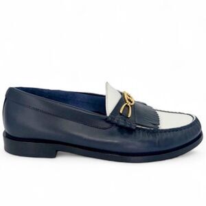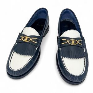 CELINE Women's Luco Triomphe Navy & White Horsebit CC Logo Loafers Size …