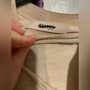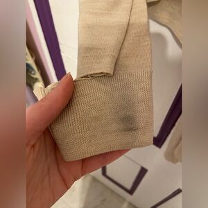Luxurious CELINE sweater in a neutral beige shade, featuring a unique lace-up back detail for a statement look. Crafted from a premium blend of 78% wool and 22% silk, this piece is soft, lightweight, and perfect for layering.
