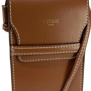 Elevate your style with this chic CELINE X Heidi Slimane crossbody bag in a beautiful brown color. Crafted from high-quality leather, this bag is the perfect accessory to complete any look. The solid pattern and flap closure add a touch of sophistication, while the brown leather handle and strap provide a comfortable and secure fit. The tan lining material and CELINE brand make this bag a must-have for any fashion-forward woman. Whether you use it to store your sunglasses or phone, this crossbody bag is a versatile and stylish addition to any outfit. In excellent, beautiful condition. Dimensions: 8"H x 3.75"W x 2"D