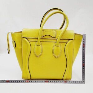 CELINE Yellow Pebbled Leather Micro Luggage Tote Bag