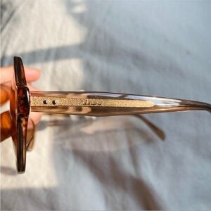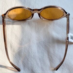 Round oversized sunglasses. Color is more beautiful in person!! Light orange and super retro sunglasses