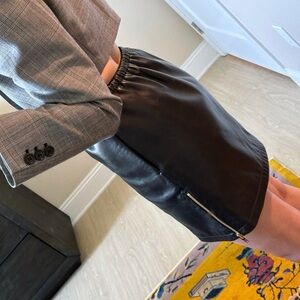 CELINE skirt in Lambskin. Black leather. Size 38 FR.