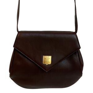 Celine Triomphe bag, Celine shoulder bag, understated luxury, deep purple, dark maroon, red, vintage Celine, Celine crossbody, burgundy leather bag, Celine Triomphe crest, Celine logo bag, Parisian designer handbag, Celine authenticity COA