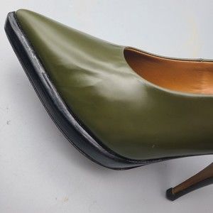 CELINE women heels pumps army green leather pointed toe SIZE US 5.5 EUR 36.5